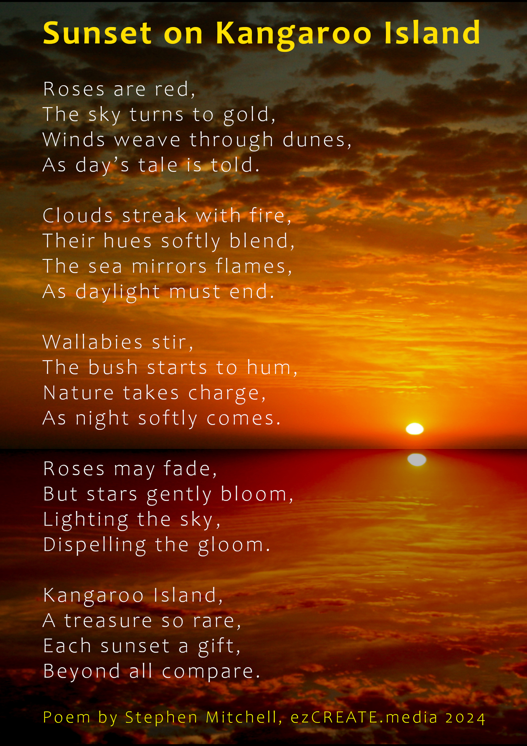 This evening I chose one of my many photographs taken here on Kangaroo Island over the last 26 years to display the words upon. Here it is for your reading pleasure: